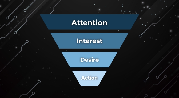 The classic framework is AIDA — Awareness, Interest, Desire, Action.